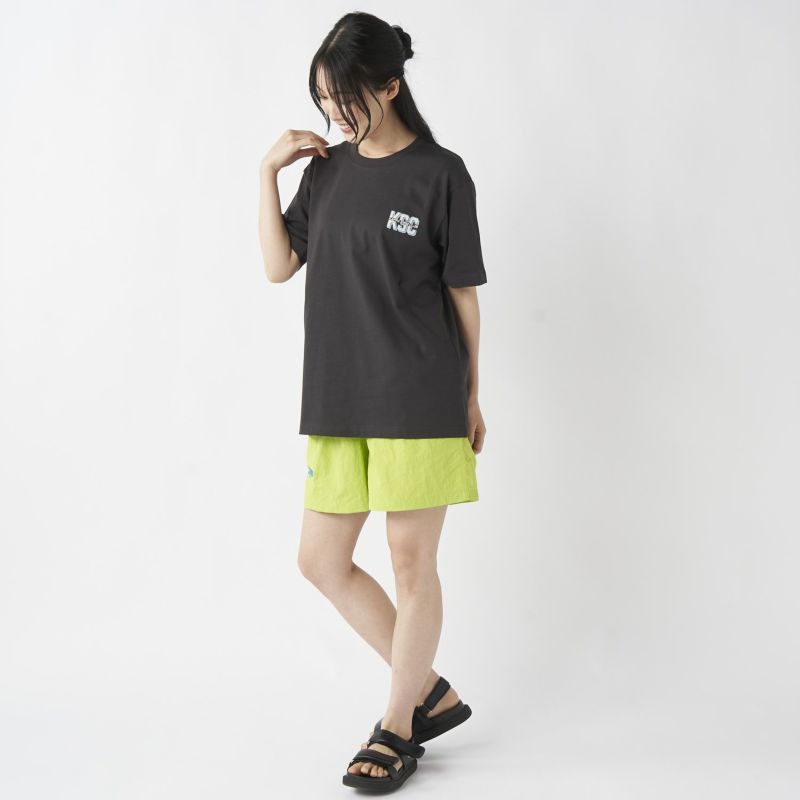 裏地は100%ポリエステルのメッシュインナー付き。ゆったりしたシルエットにゴムウエストというイージー仕様の水陸両用ショートパンツ。ウエストゴムはフロントにアタッチメントとアジャスターが付いており必要に応じて調整が可能です。両サイドのスリットポケット、ジップ付きのバックポケットを完備。