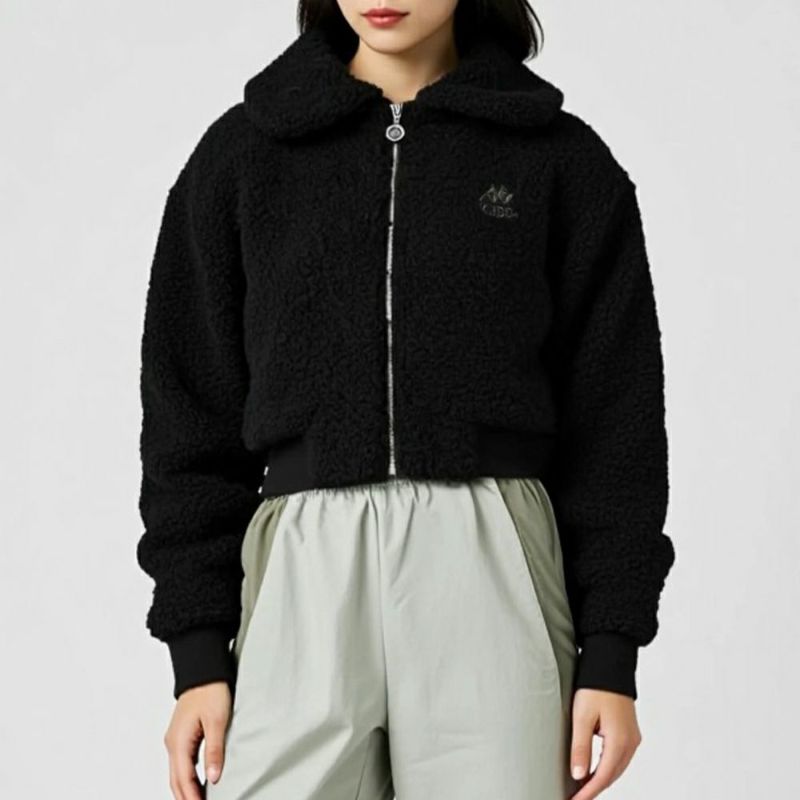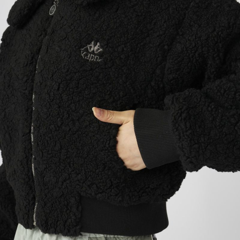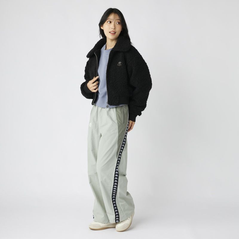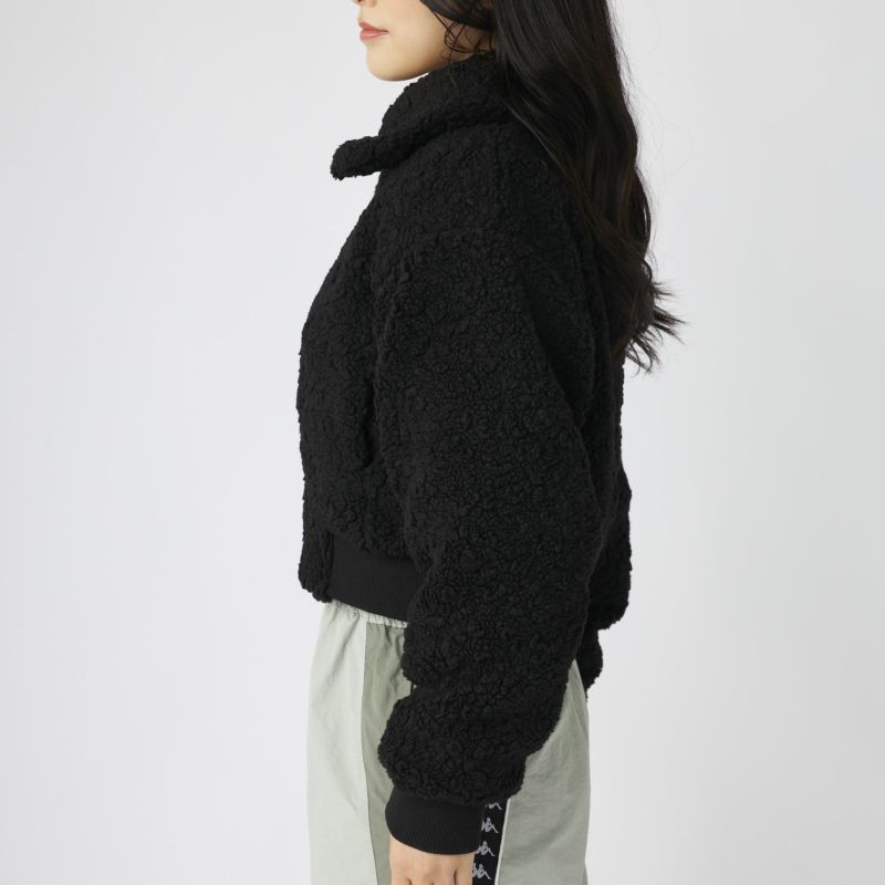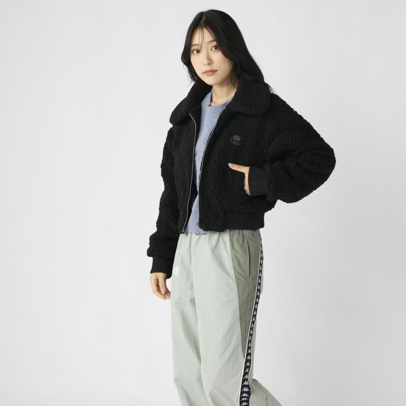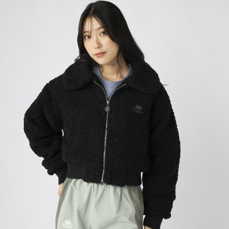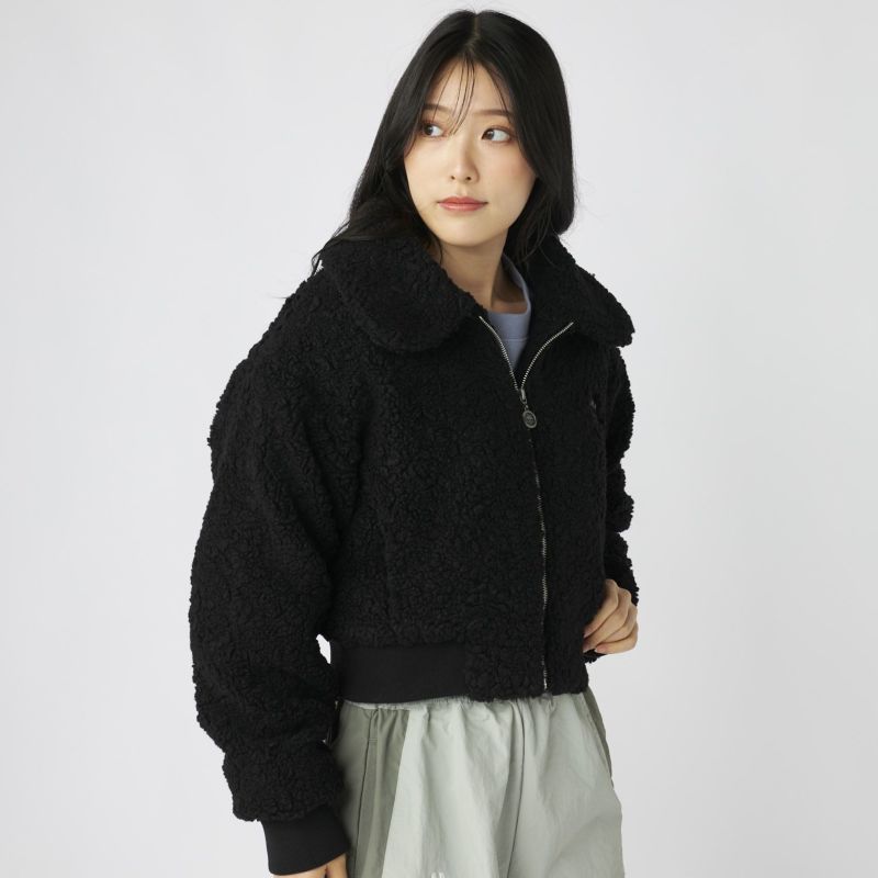 もこもこのボア素材がシーズンムードを高める、ショート丈のドロップショルダージャケット。