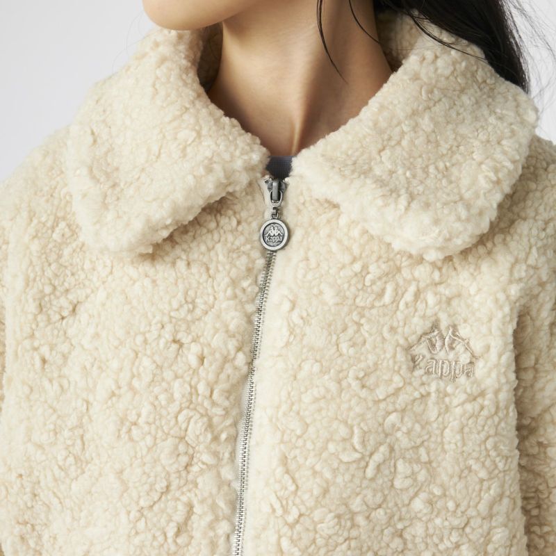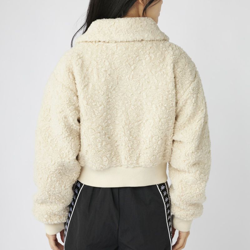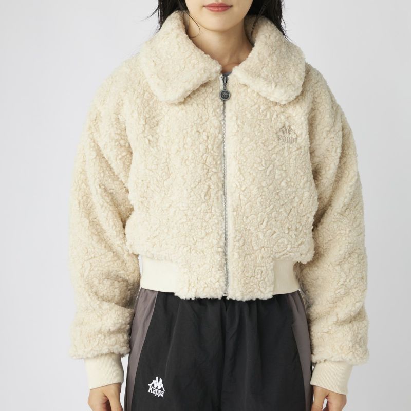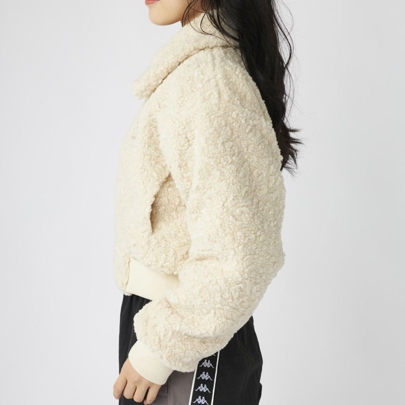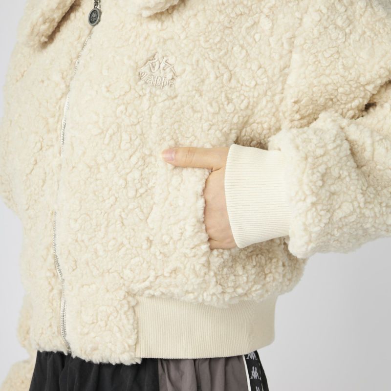 もこもこのボア素材がシーズンムードを高める、ショート丈のドロップショルダージャケット。