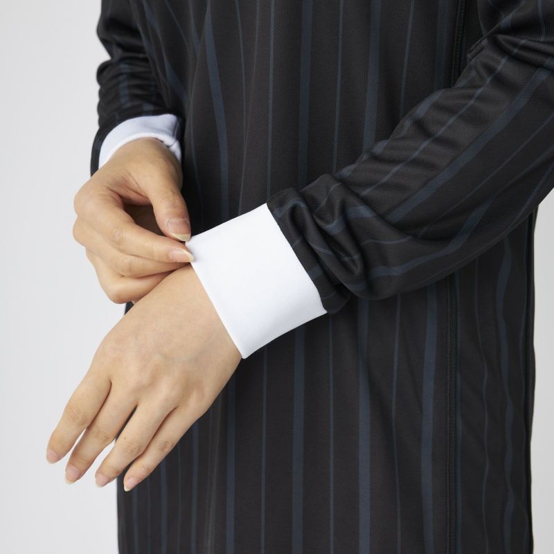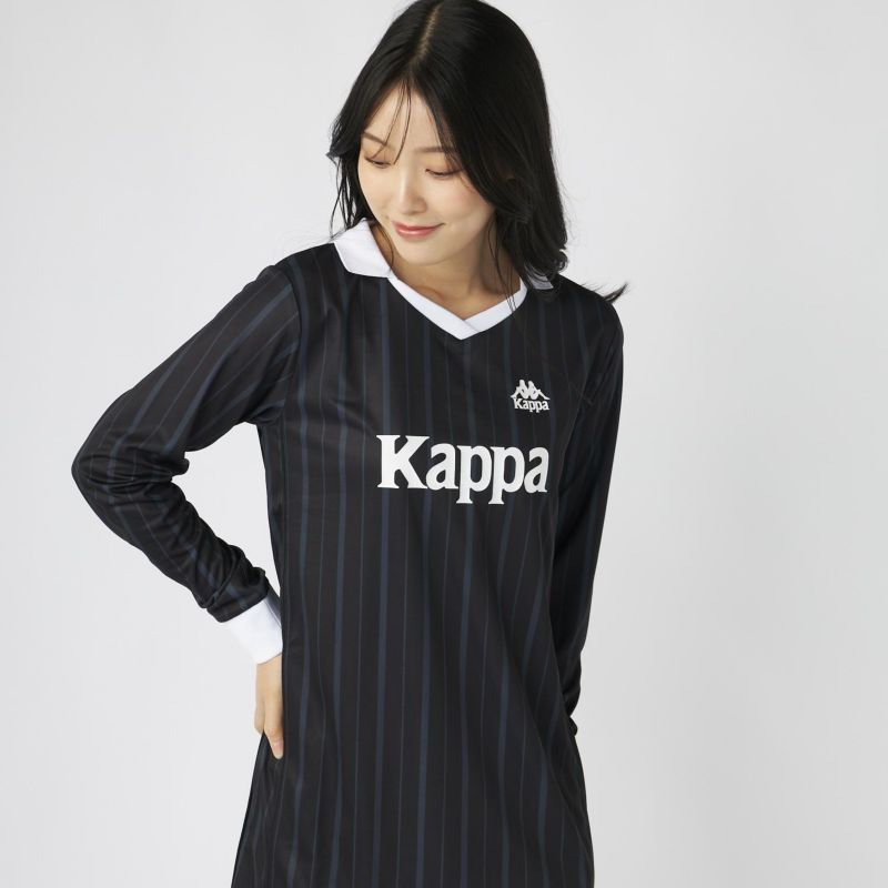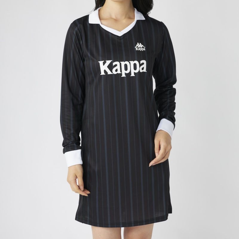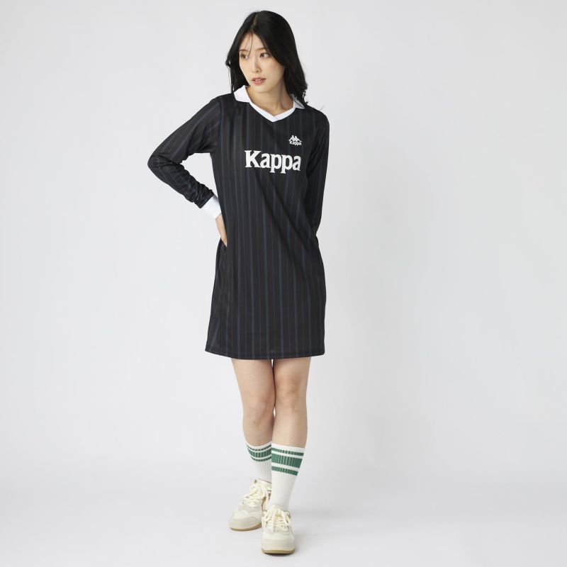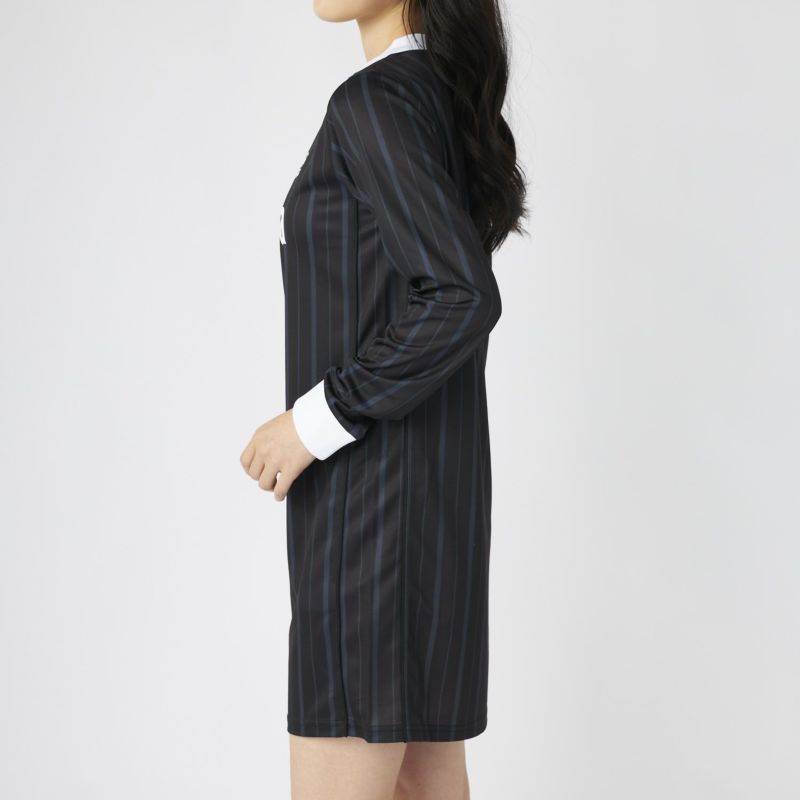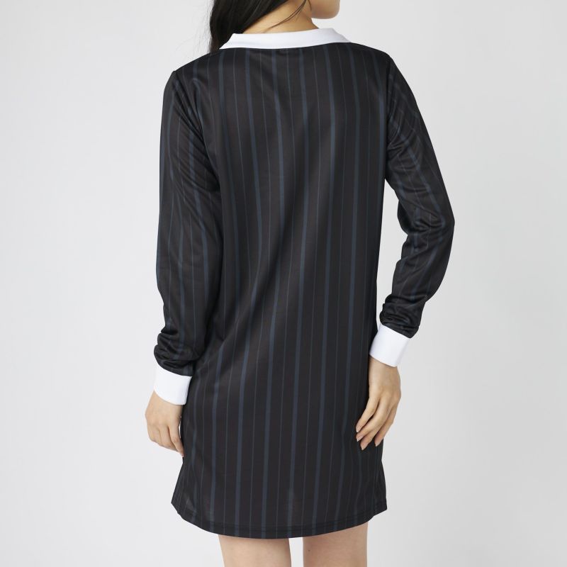 サッカーシャツのようなゲームデザインをベースに、ワンピースシルエットに落とし込んだ一着。