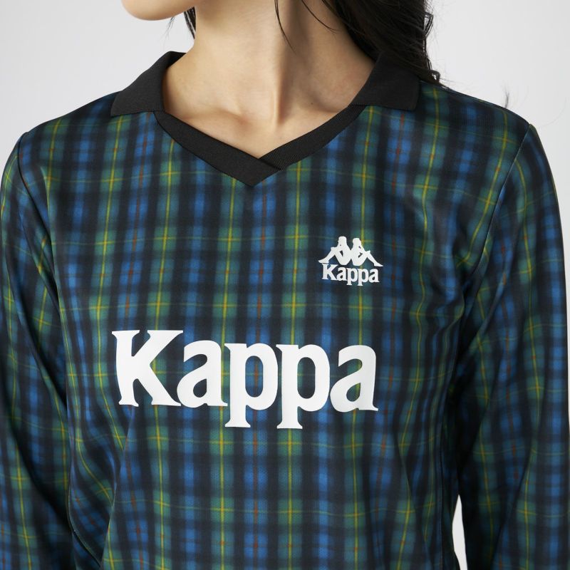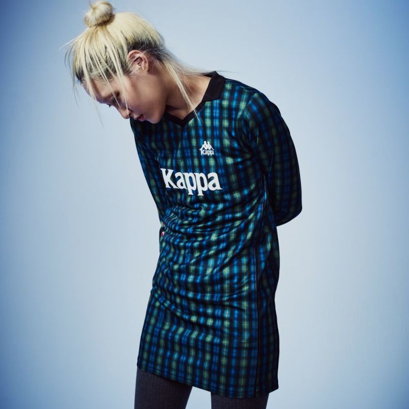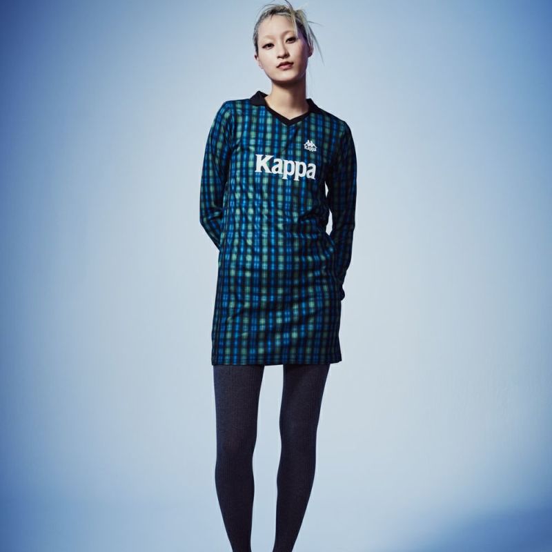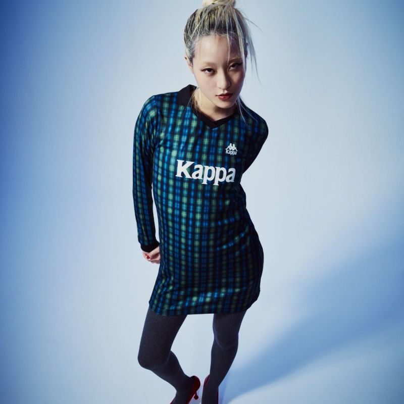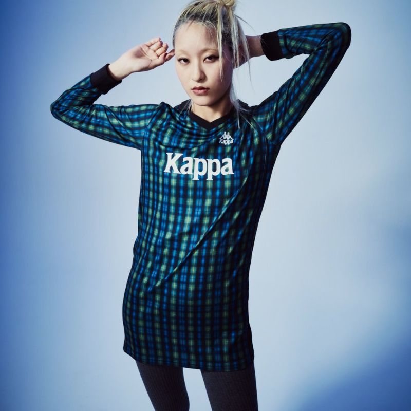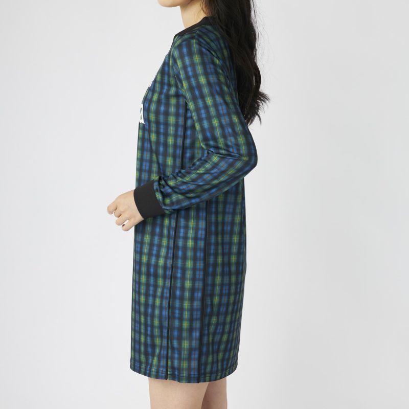 サッカーシャツのようなゲームデザインをベースに、ワンピースシルエットに落とし込んだ一着。