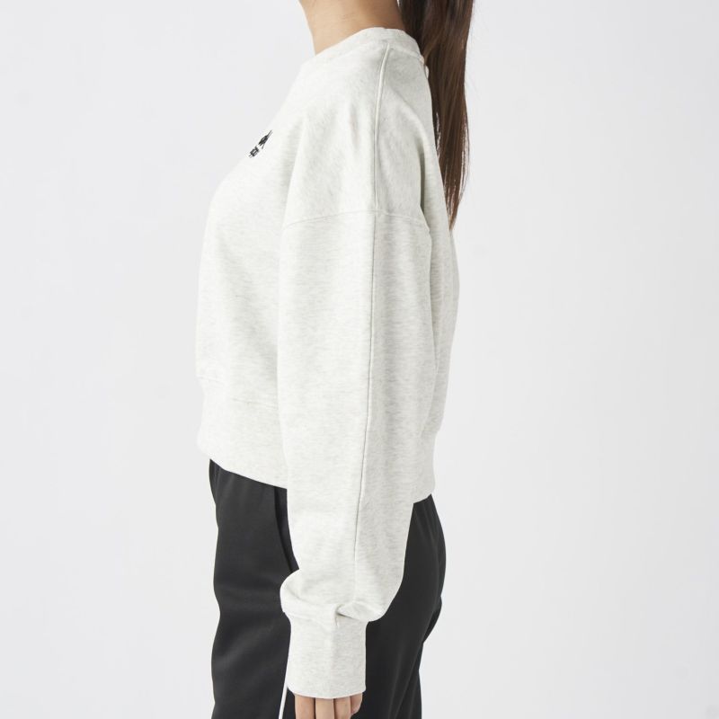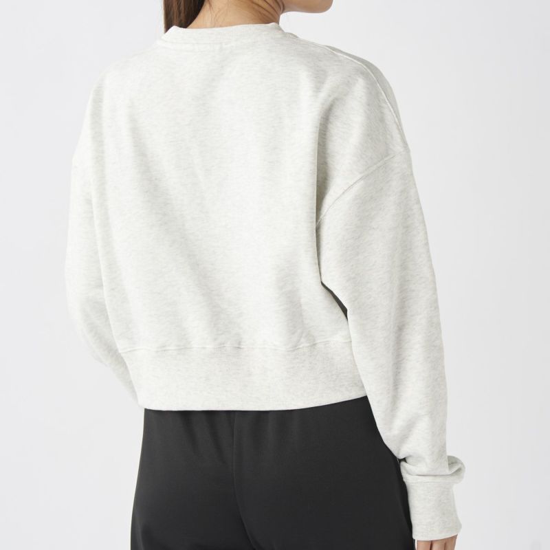 軽やかなショート丈に、ゆるっと落ちたドロップショルダーが今っぽい裏毛スウェット。