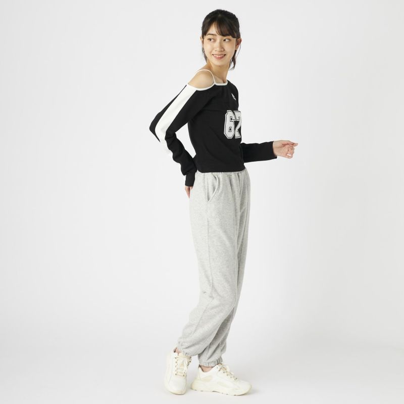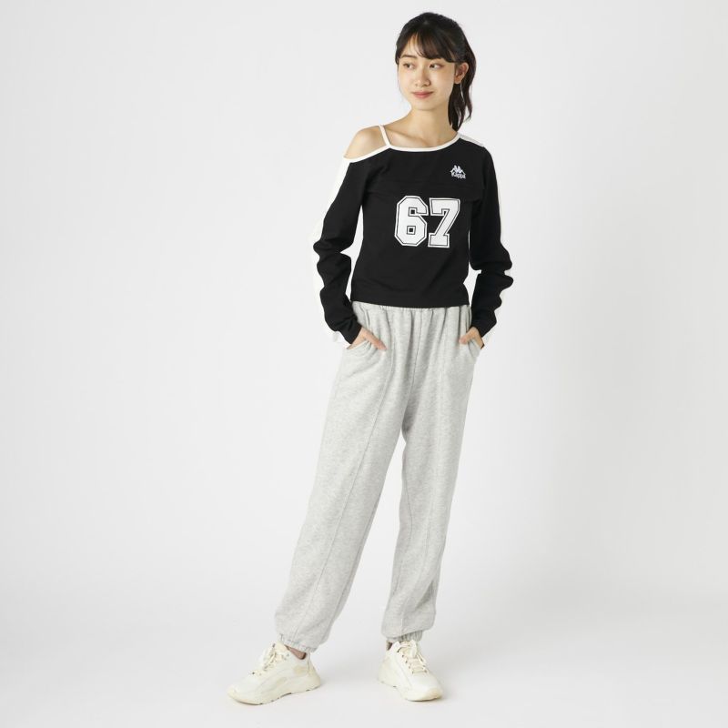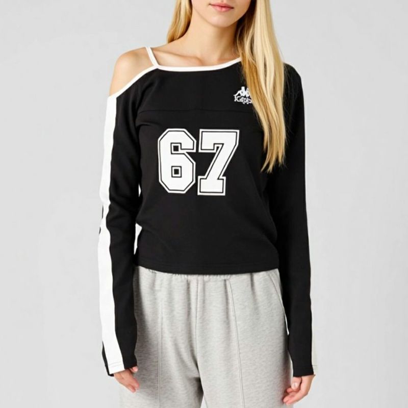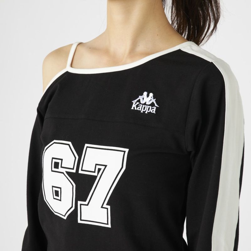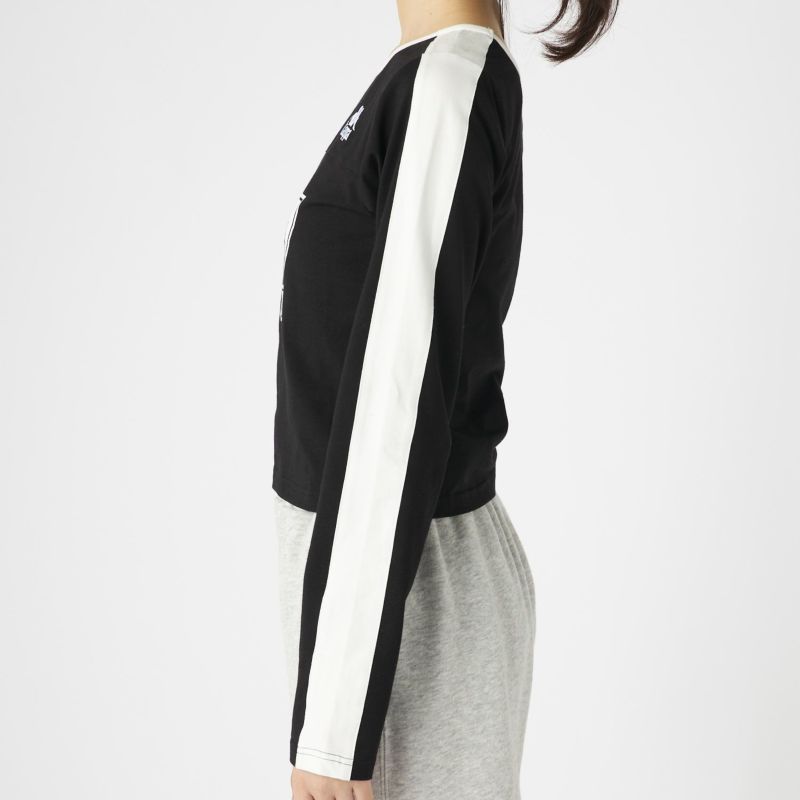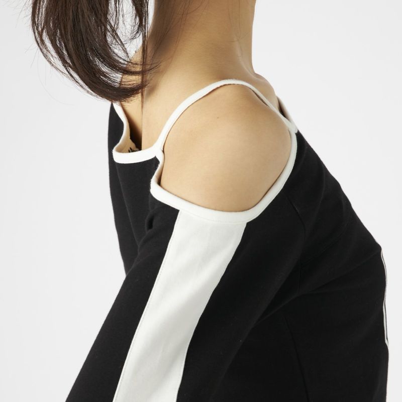 肩にストラップがついたショート丈の長袖Tシャツです。