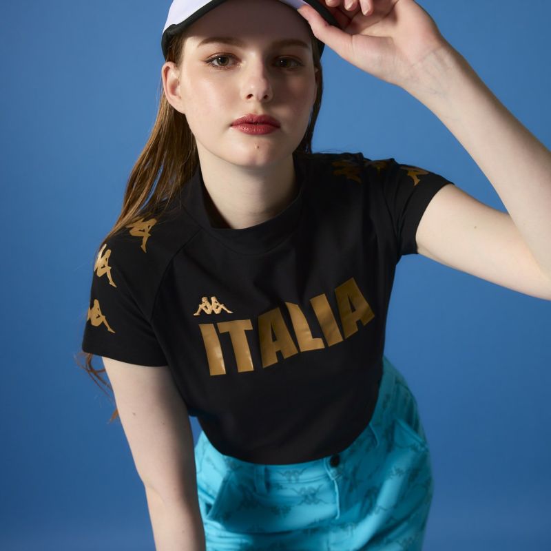 スポーティなデザインのレディスモックネックTシャツ。スカートとの組み合わせはもちろんパンツとの組み合 わせも相性良く、スポーティでかっこいいコーディネートが可能です。
