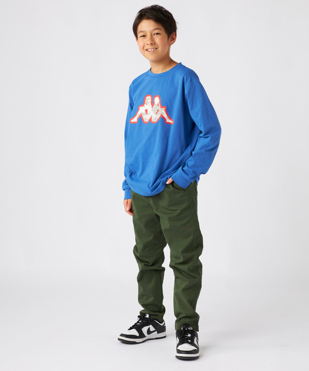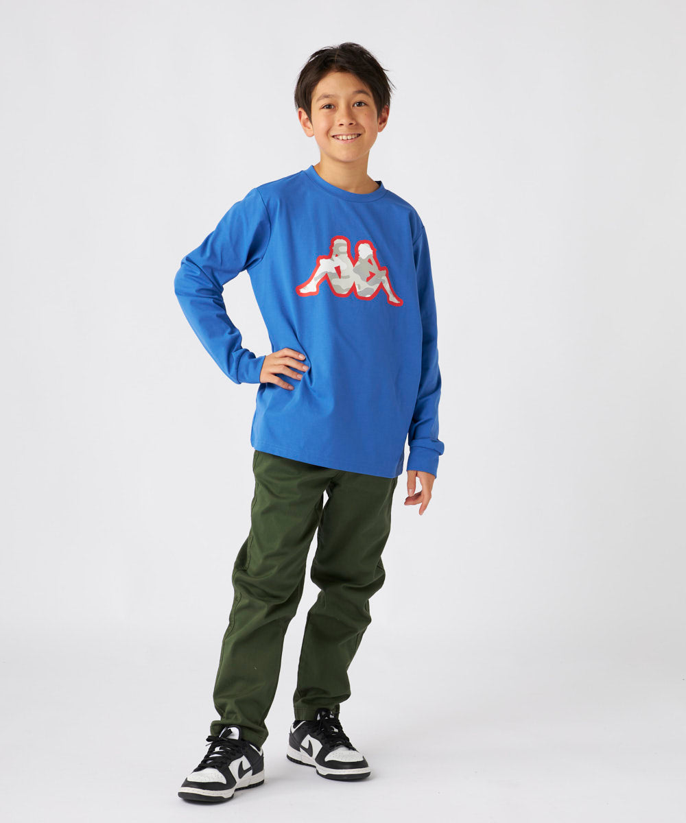 存在感のあるセンターロゴが目を引くKAPPAの長袖Tシャツ。ベーシックで使いやすい4色展開で、カジュアルからスポーツまで幅広いシーンに活躍します。通気性と肌触りに優れたTC素材でオールシーズン使いやすいロンTです。イタリアを代表するブランドKAPPAのアイコンでもあるOMINIモチーフを大きくプリントしたスポーティーなデザインです。ユニセックスで着用できます。