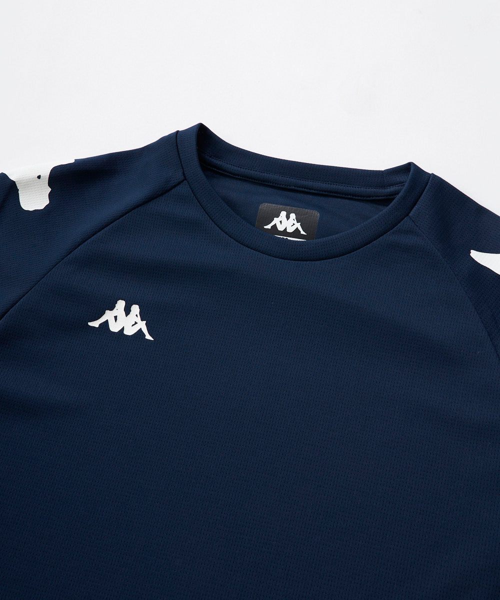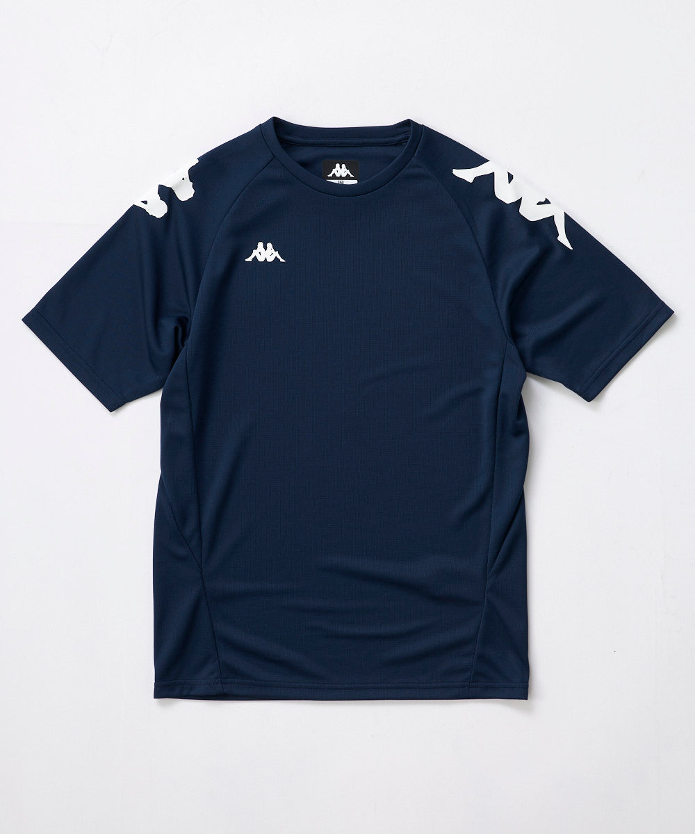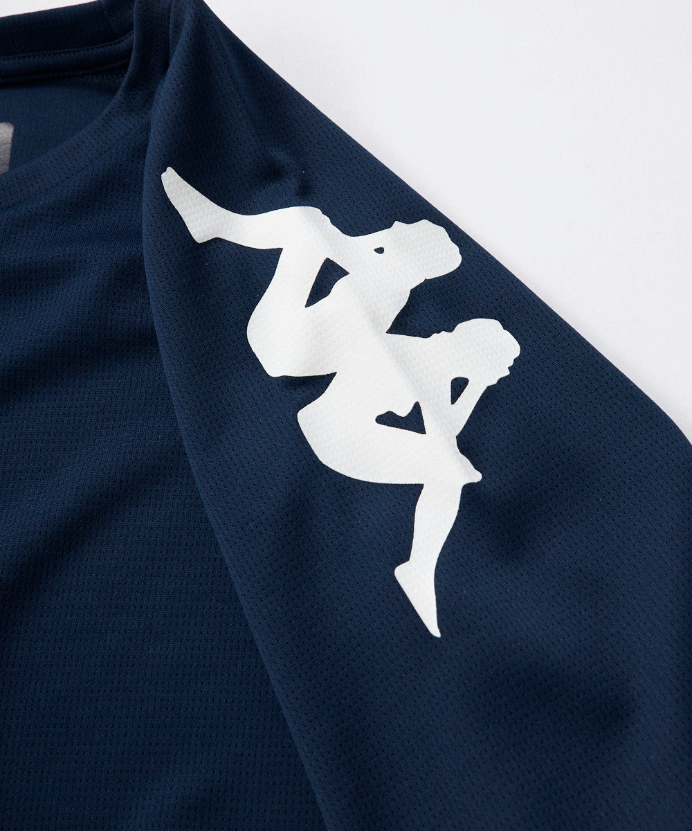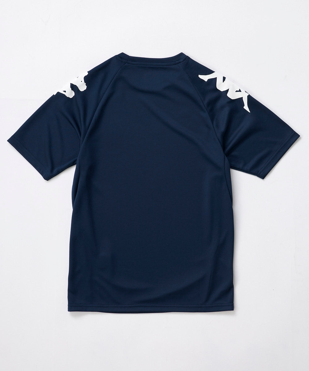 Kappa定番デザインのジュニアサイズのラグランTシャツです。吸水速乾生地で機能性にも優れています。