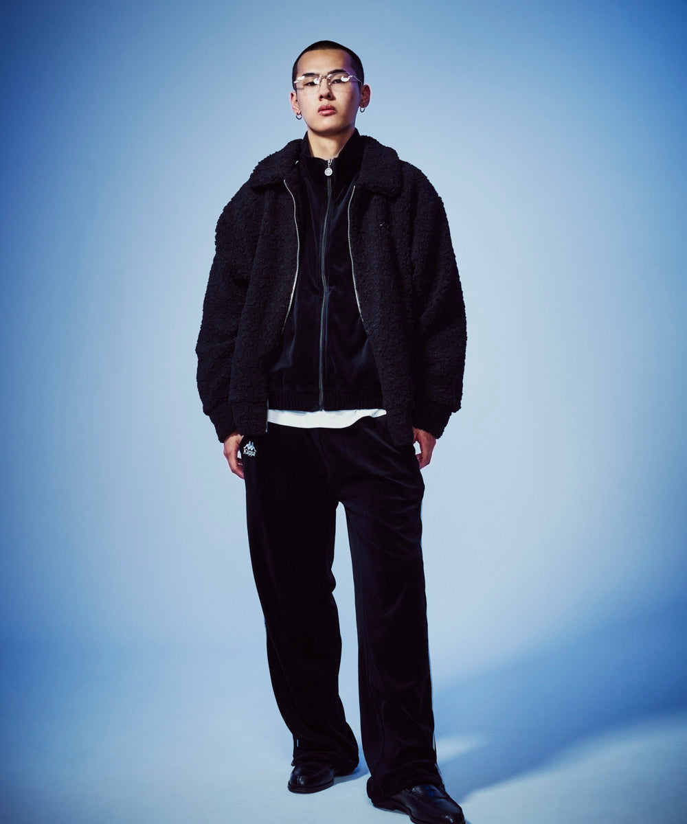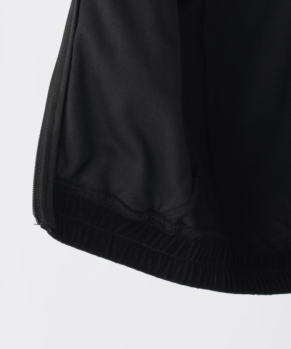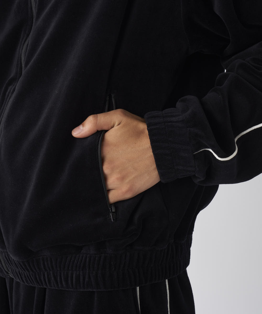 光沢感のあるベロア素材が、スポーティーなシルエットに上品さをプラス。