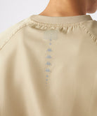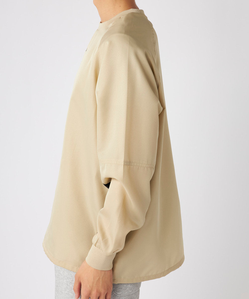 胸元のシンプルなオミニロゴがポイントのナイロンピステです。撥水のため、雨の日のランニングや、防寒対策にオススメです。
