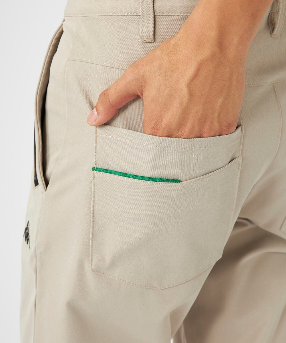 程よくゆとりを持たせた腰回りから、裾にかけてすっきりと絞ったラインが、動きやすさと美しいシルエットを両立します。