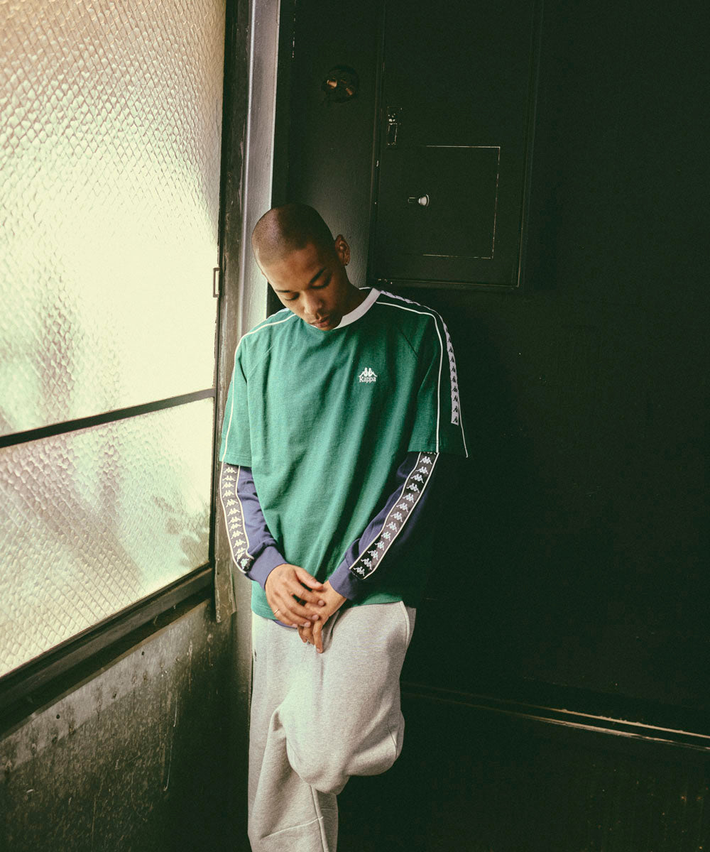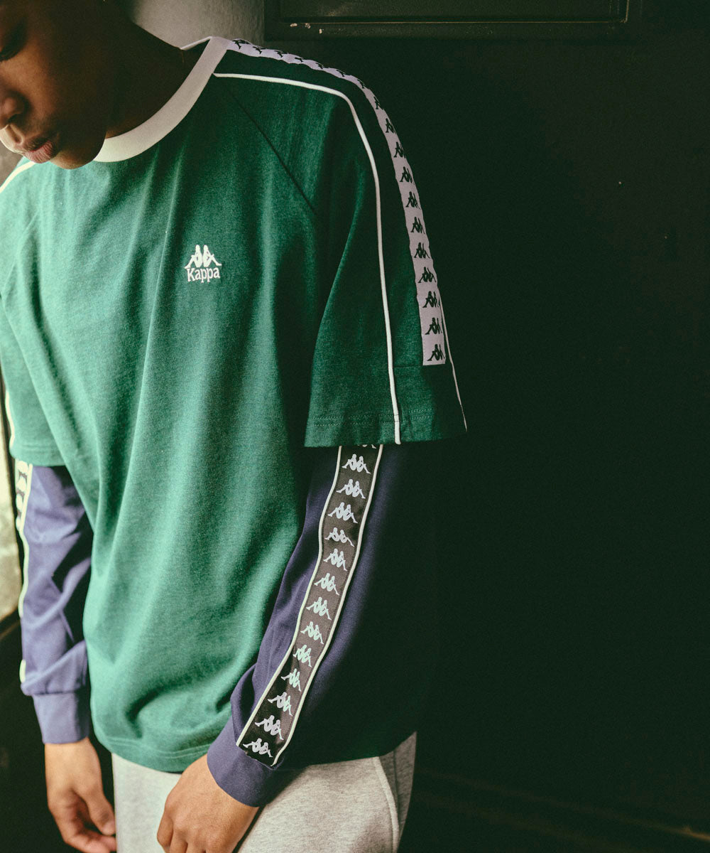 テープデザインの長袖Tシャツです。ややオーバーサイズのシルエットを採用しています。