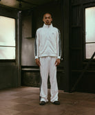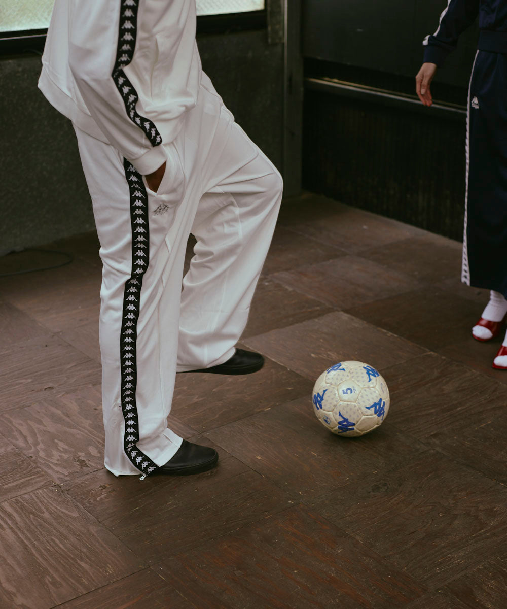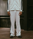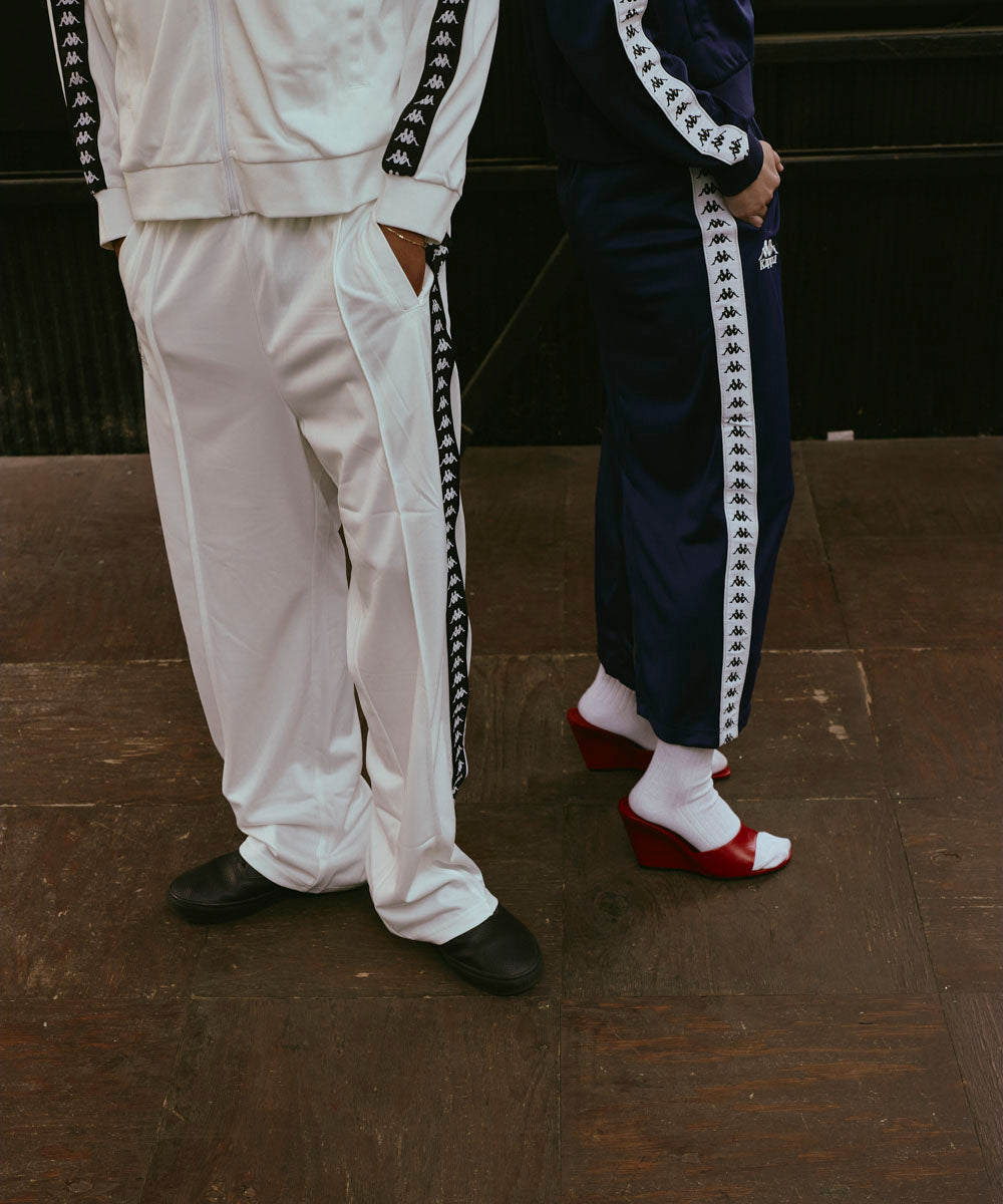 ジャージ素材を採用したテープデザインのトラックパンツです。スタンダードなシルエットで設計しています。