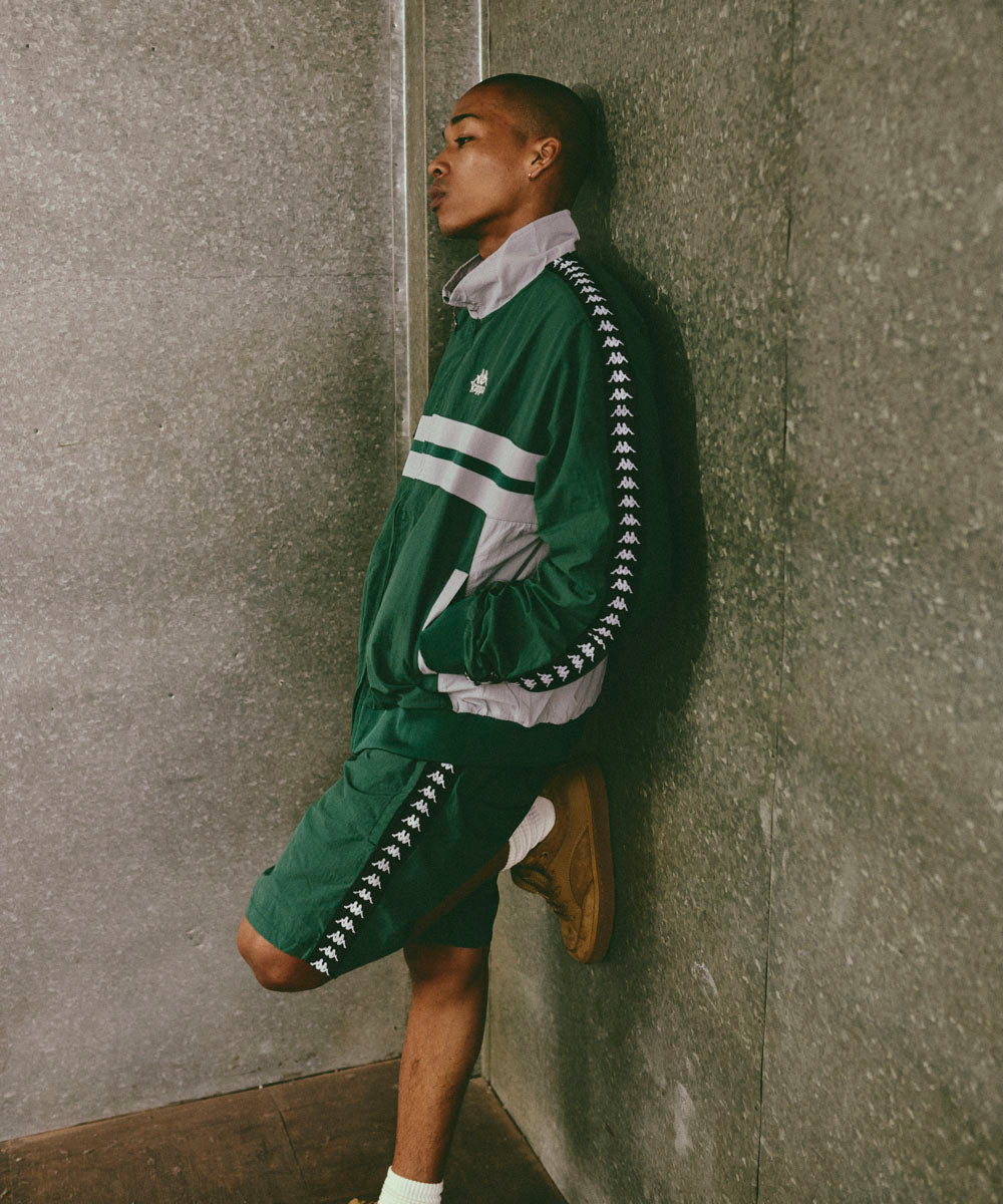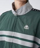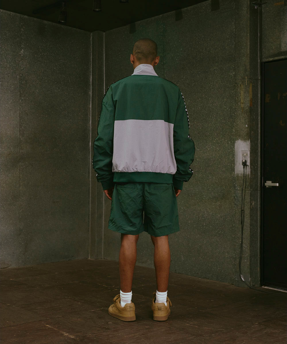 ナイロン素材を採用した切替デザインのトラックジャケットです。オーバーサイズの設計にしています。
