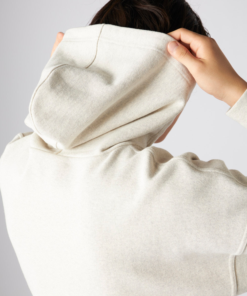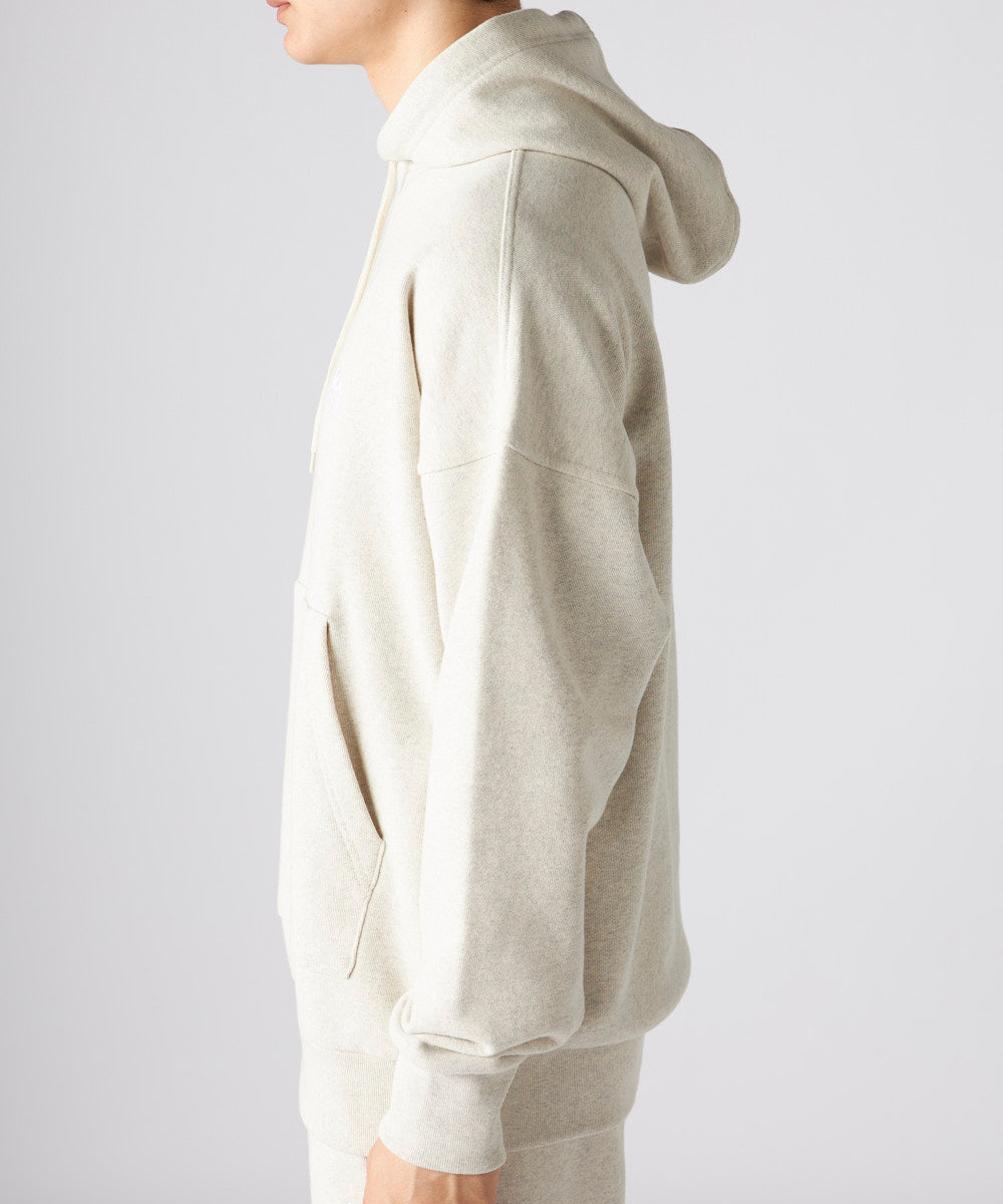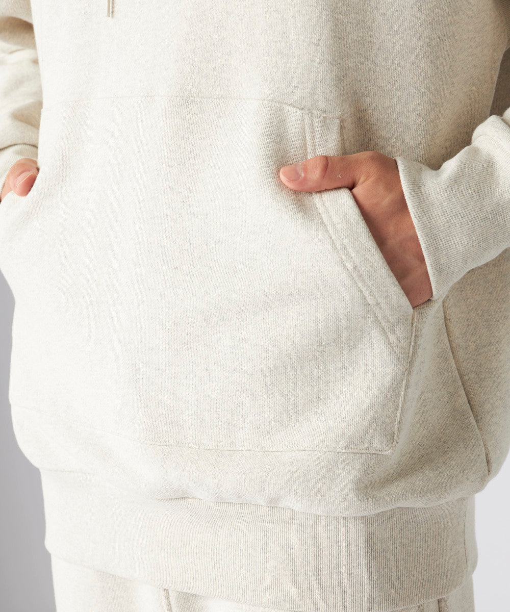 肉厚の素材感が特徴の裏毛のスウェットパーカー。