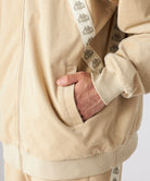 テープラインが特徴のコーデュロイ素材のトラックジャケット。