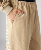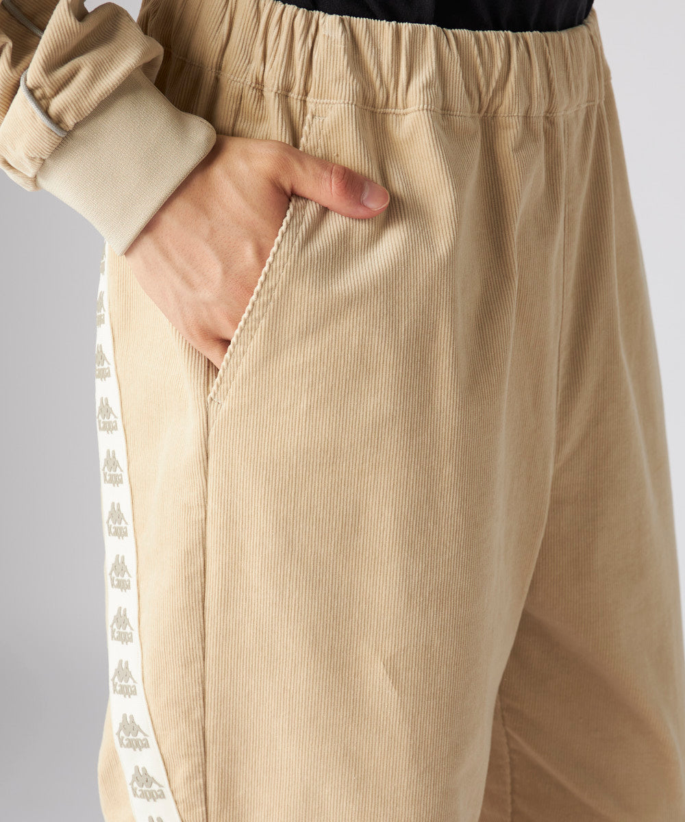 テープラインが特徴のコーデュロイ素材のパンツ。