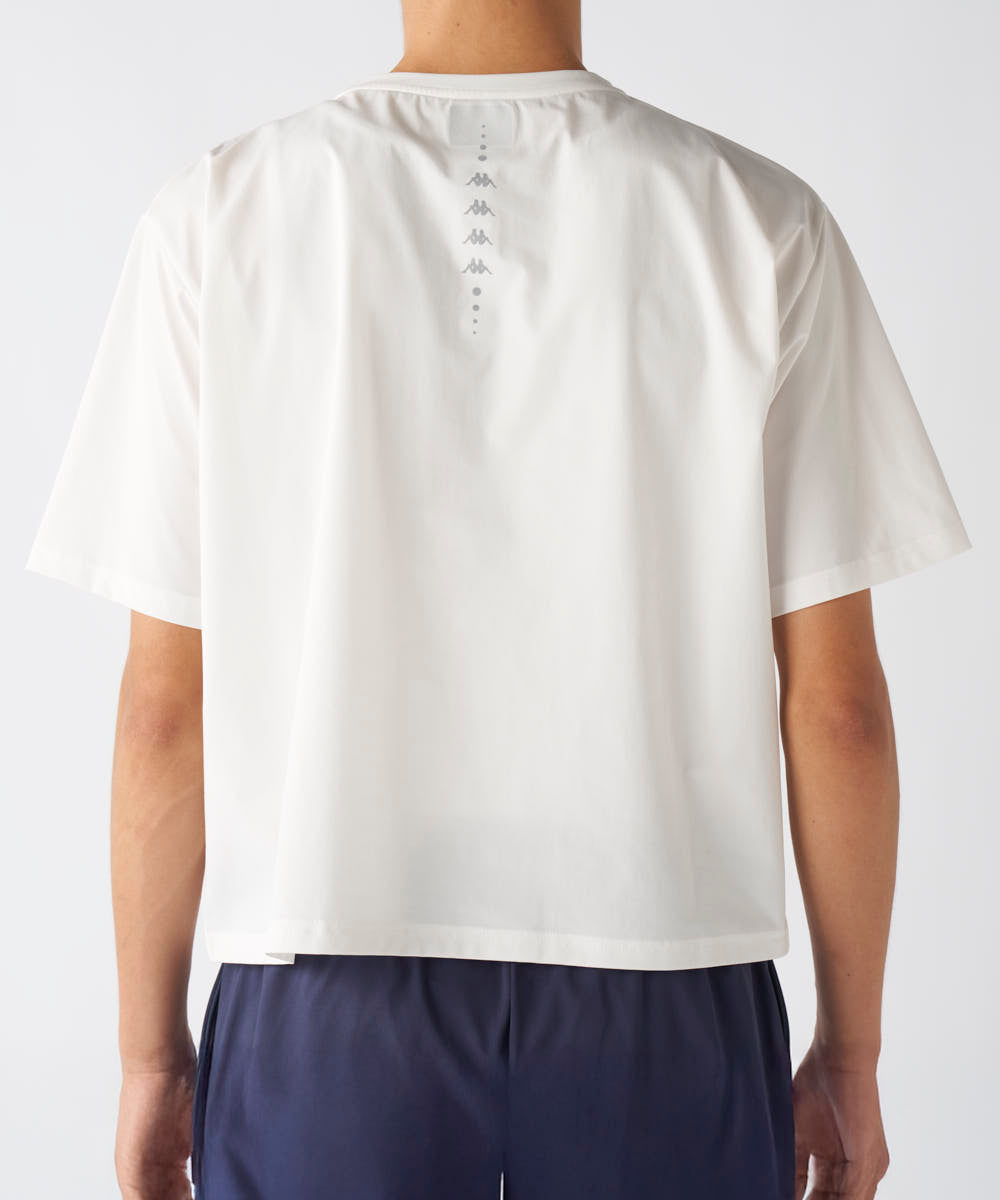 フロントにはブランドロゴを配し、背面には縦に並んだロゴがアクセントとなり、シンプルながらも洗練された印象に。