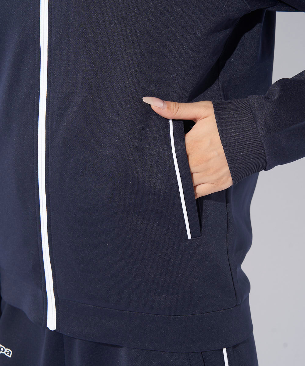 イタリア生まれのKappaが贈る、洗練されたデザインと機能性を兼ね備えたジャージ上下セット。シンプルで洗練されたデザインは、日常使いからスポーツシーンまで幅広く活躍します。シンプルなシルエットで、胸にKappaのワンポイントロゴが施されています。ラグランスリーブにかけて細いパイピングが入っており、スタイリッシュなアクセントになっています。