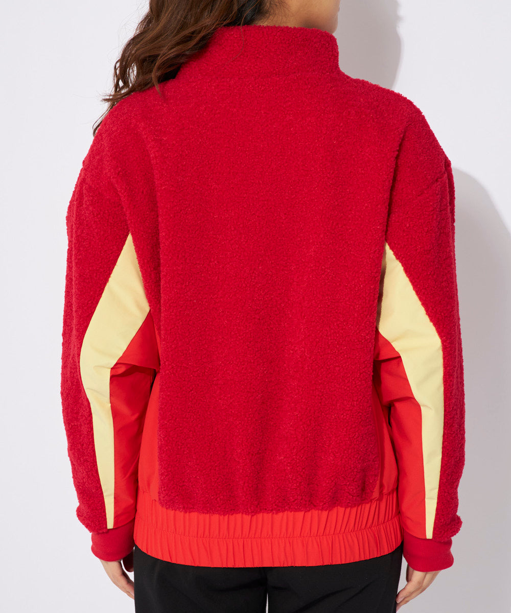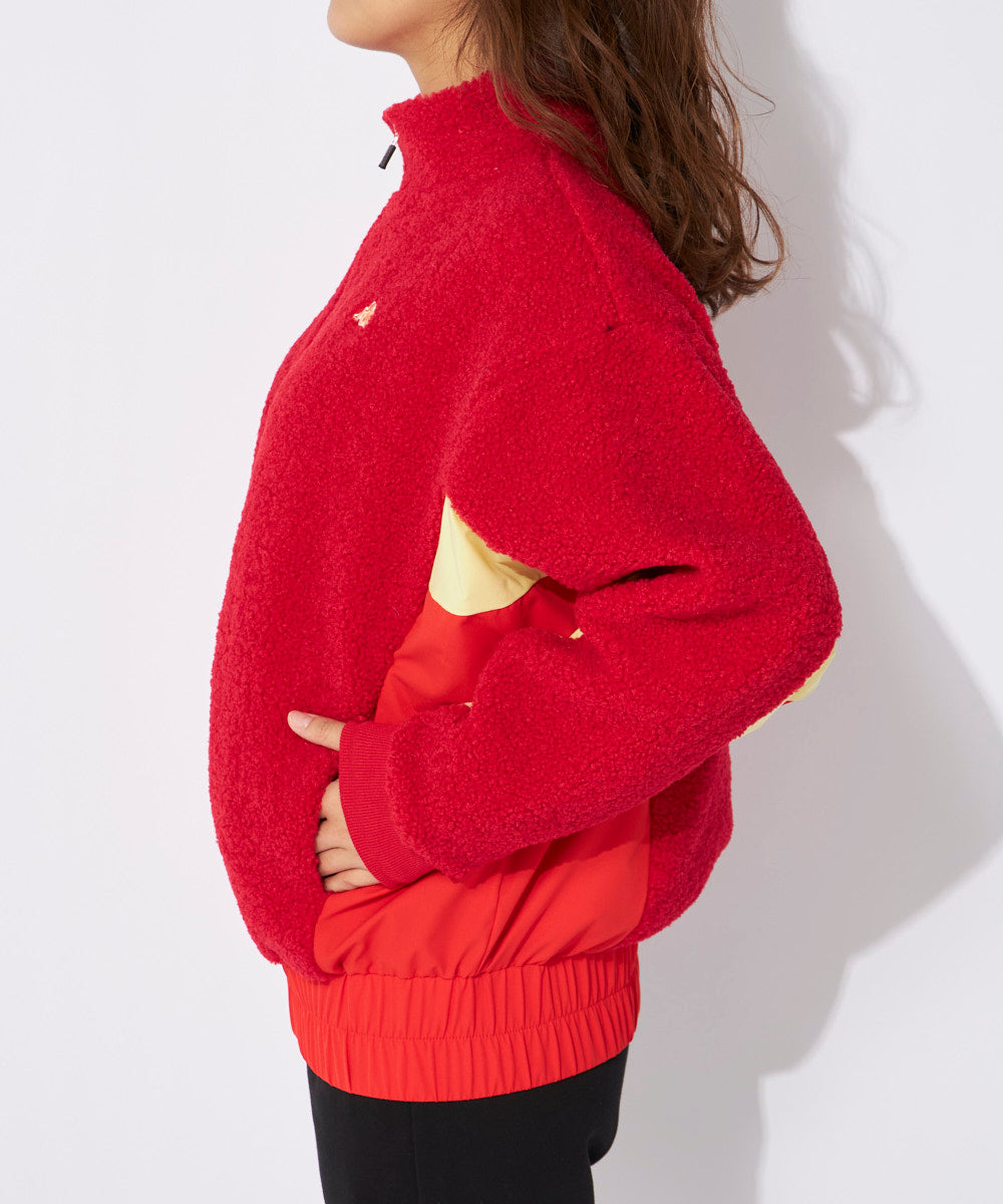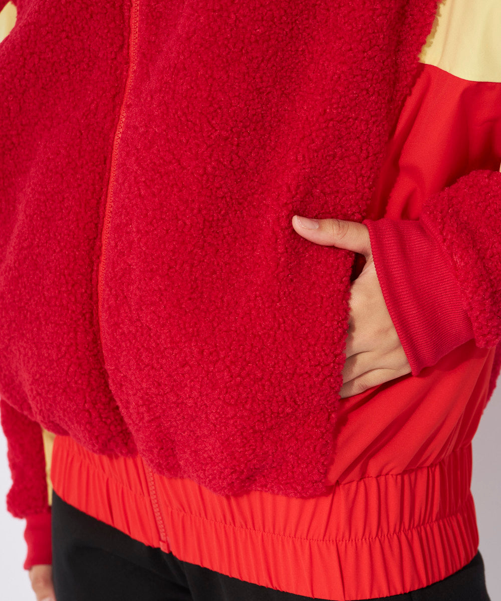 異素材と配色切替のボアフリースジャケット。