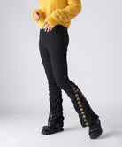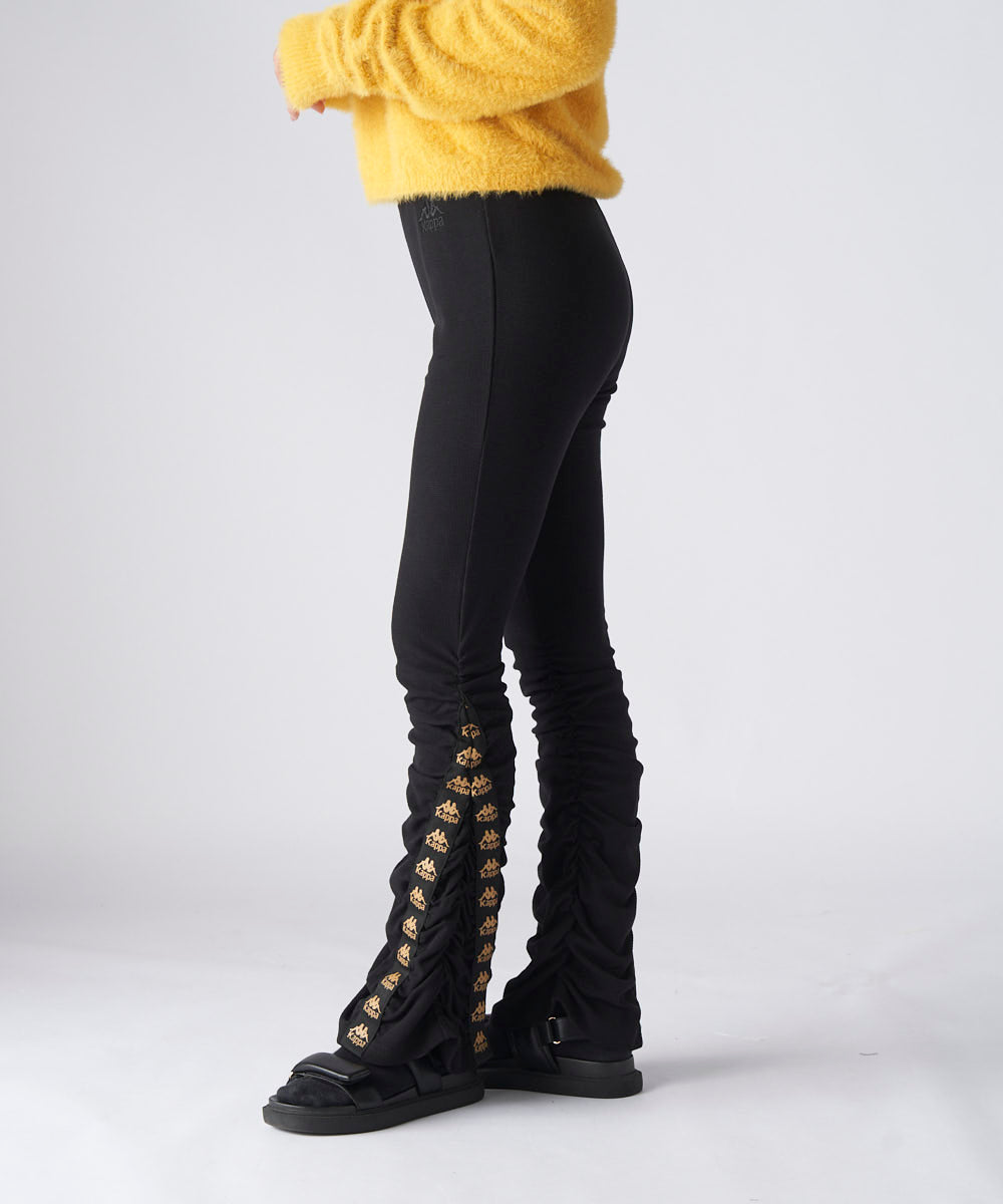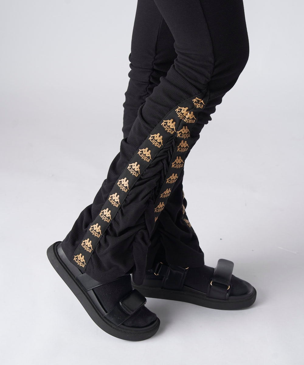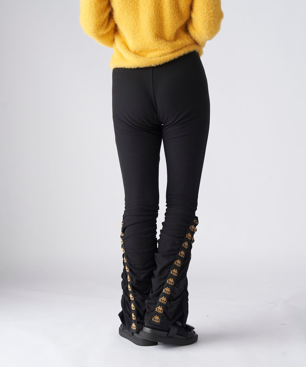 テープラインを斜めに入れ、腰回りからふくらはぎまでのシェイプさをひき立たせ、