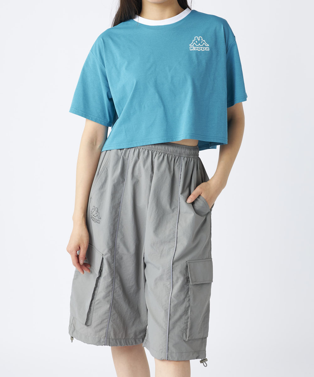 ハーフパンツはワイドなトレンド感のあるたシルエットで、