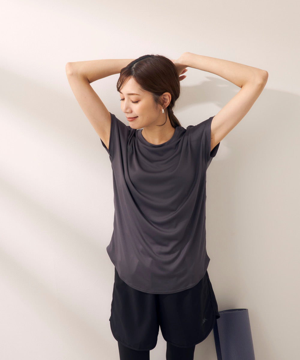 肌触りのいいスムース生地で、汗をかいてもさらりと快適♪水に入れる素材なので、ラッシュガードとしても使えます。
