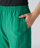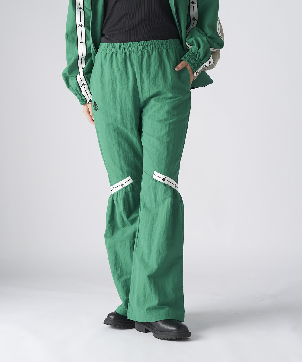 テープラインが特徴のナイロン素材のロングパンツ。