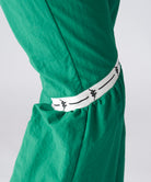 膝上にテープラインを入れ、膝部分のパタ ーンを絞ることでスタイリッシュながら裾にかけてモード感を出しています。