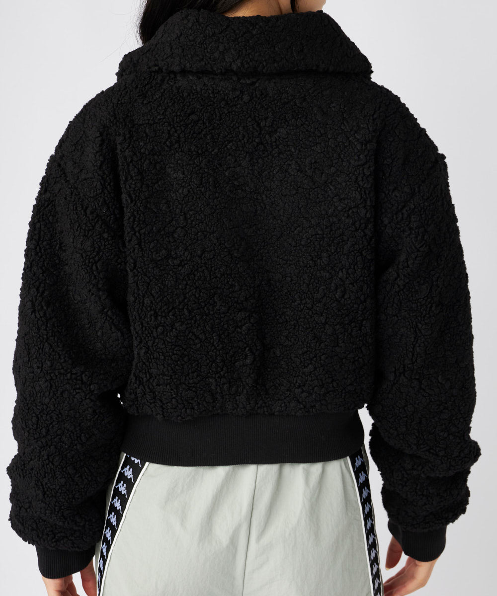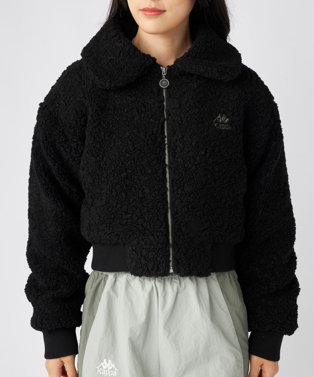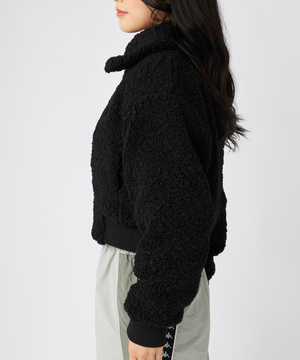 もこもこのボア素材がシーズンムードを高める、ショート丈のドロップショルダージャケット。