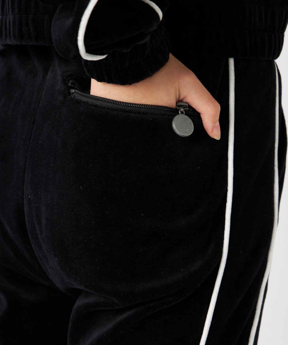 上品な光沢を放つベロア素材に、直線的で構築的なボックスシルエットを掛け合わせた一本。
