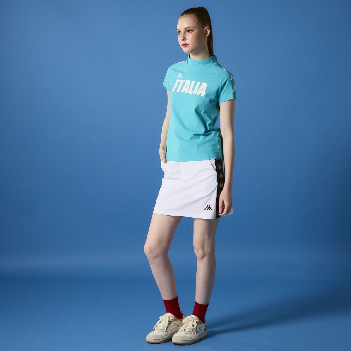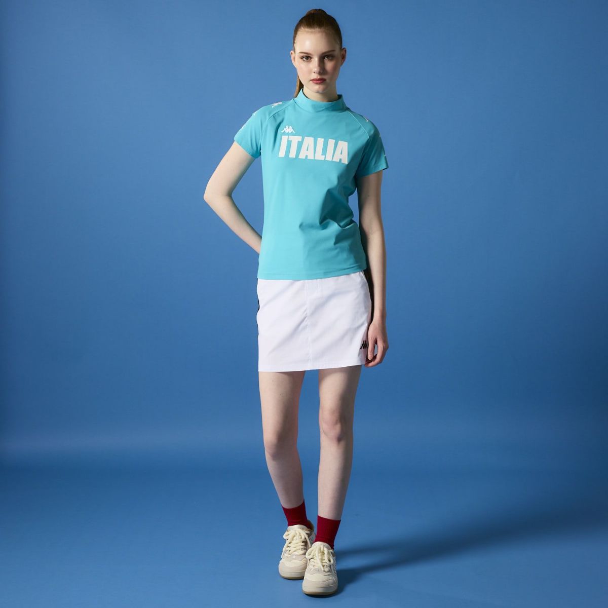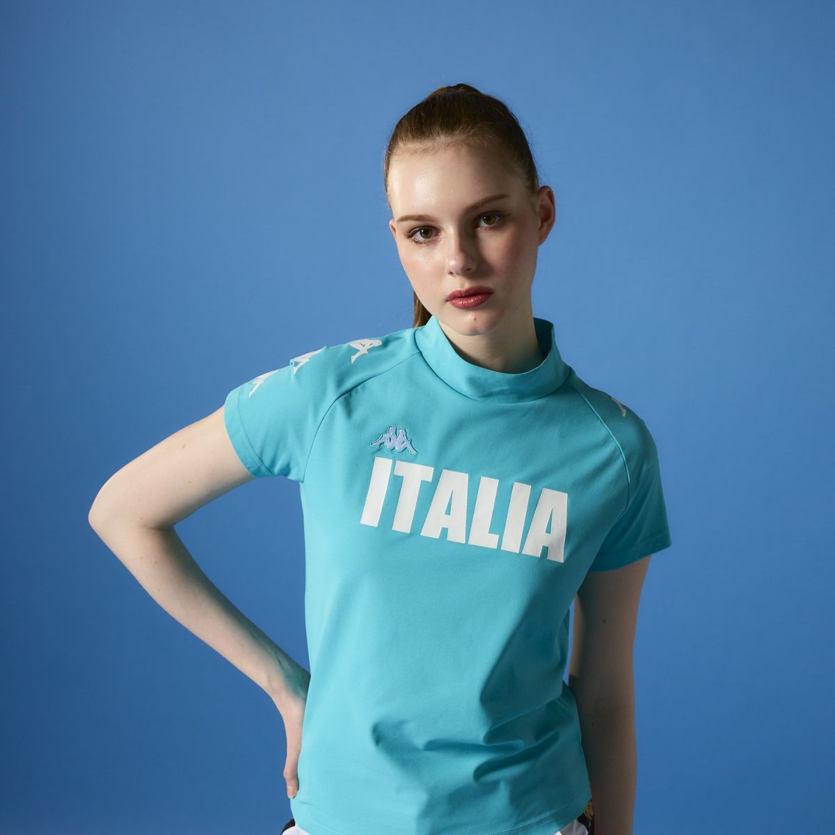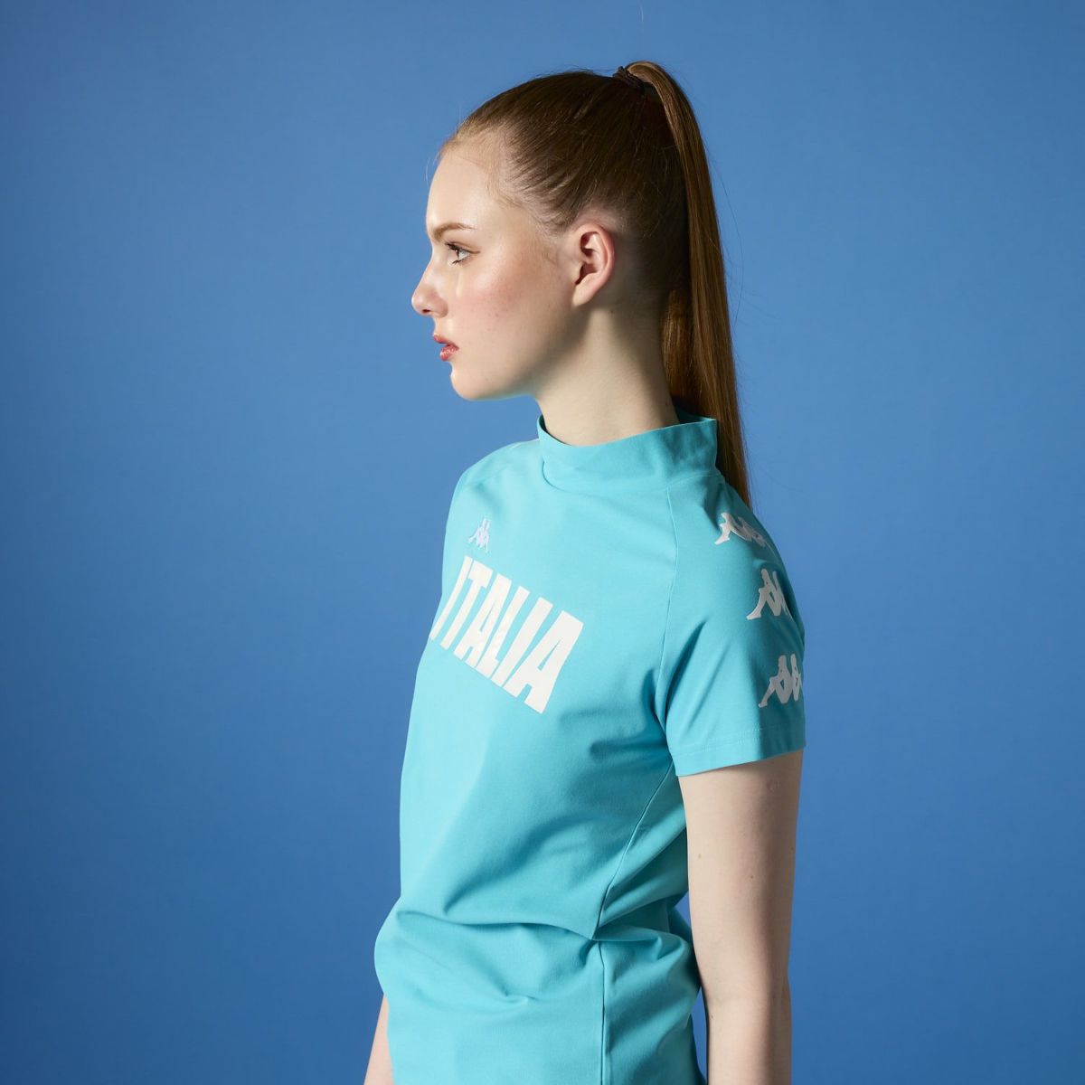 レディース 半袖モックネック
