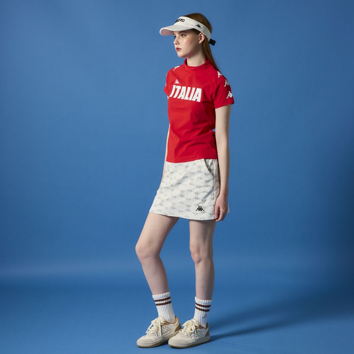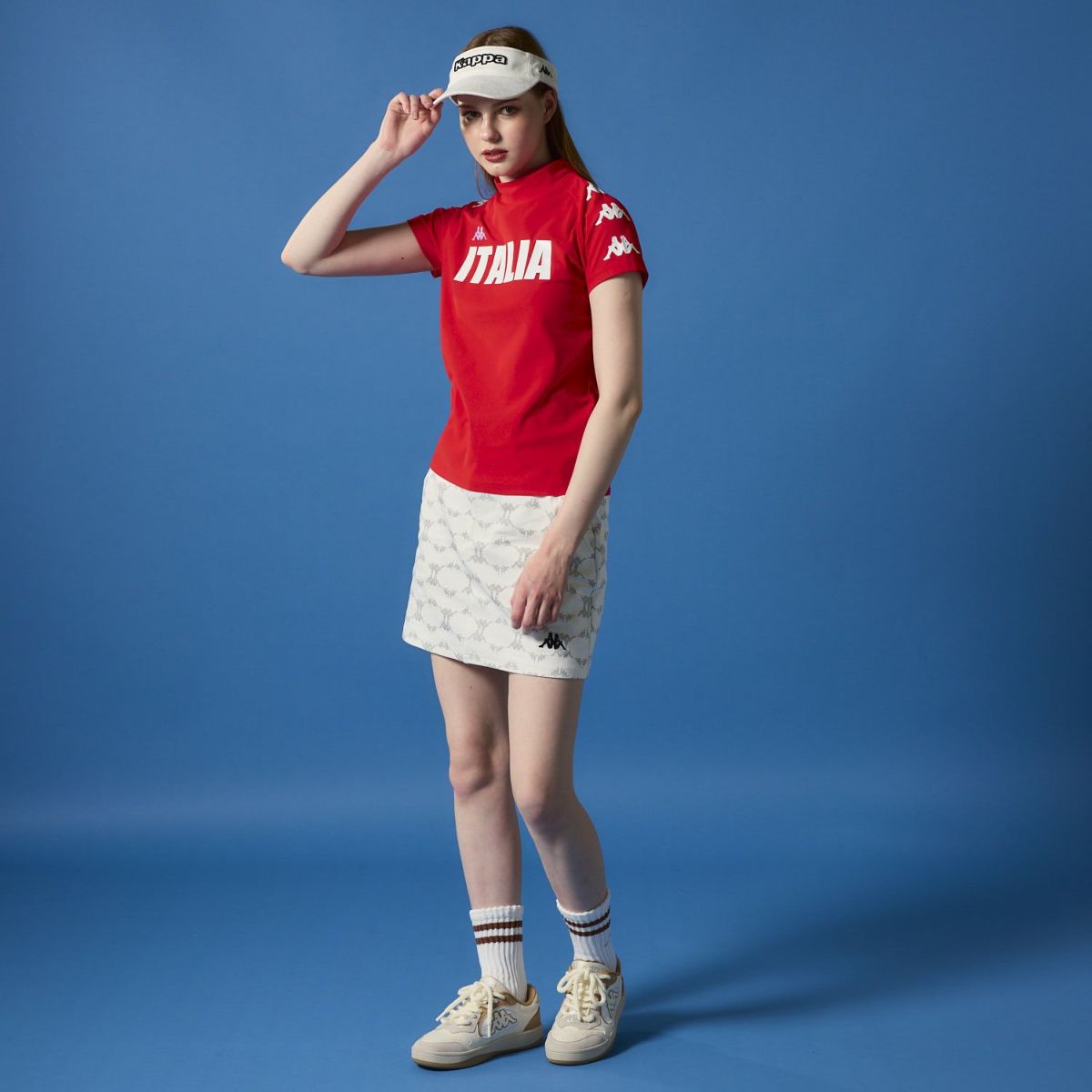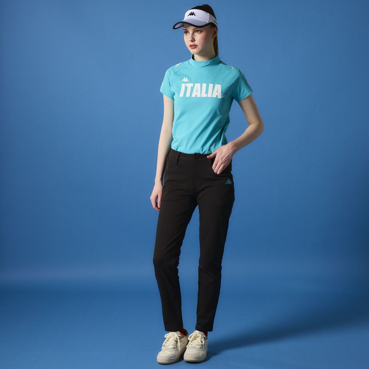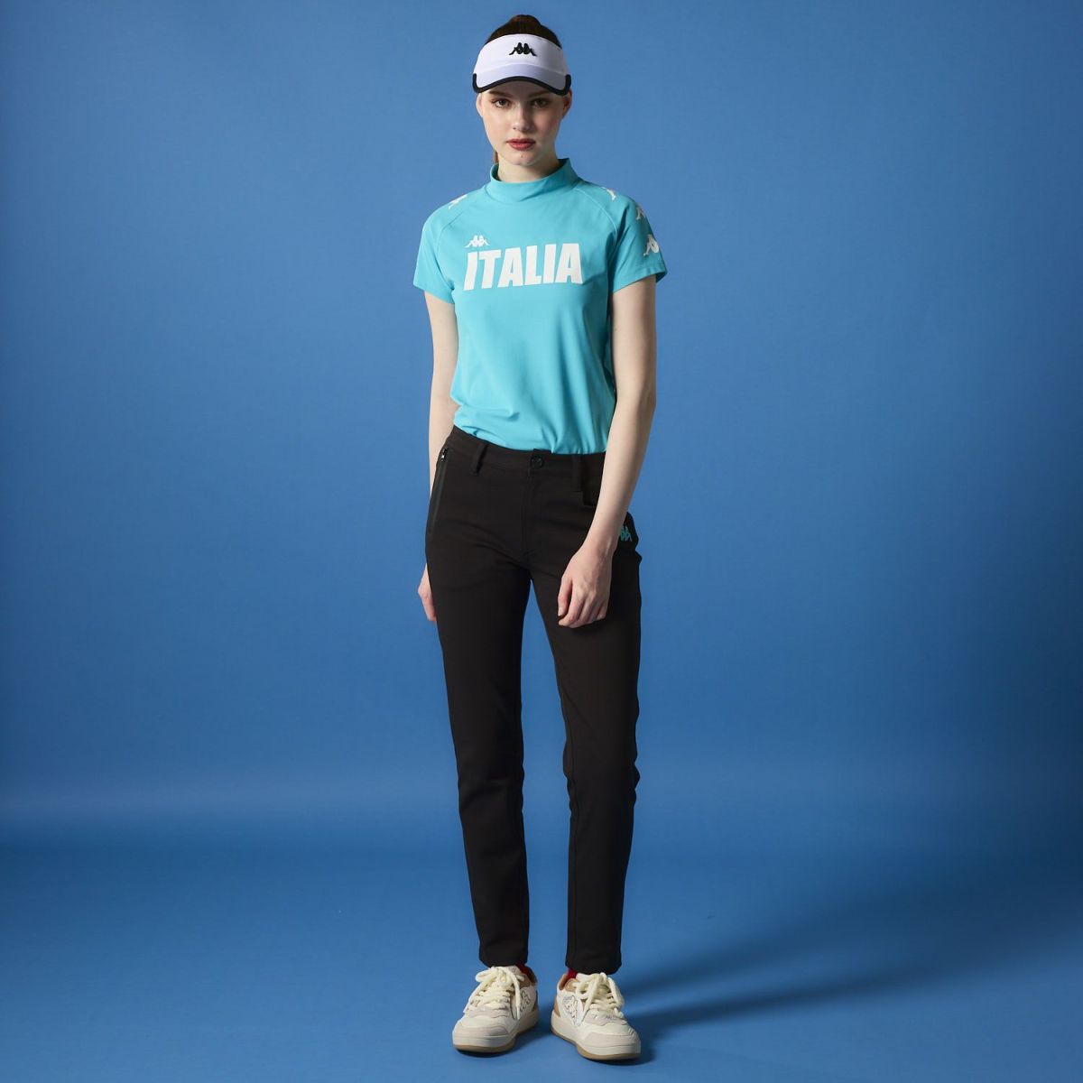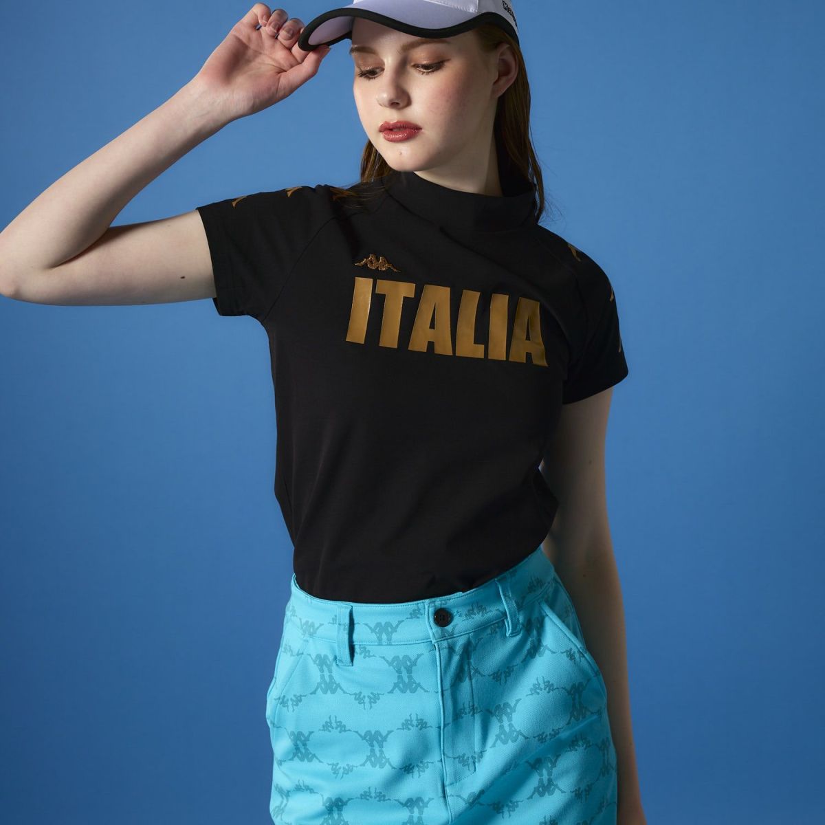 レディース 半袖モックネック